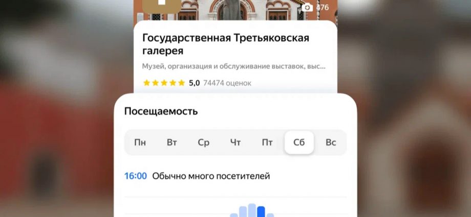 Интернет, 30 августа 2024 года. Теперь в приложении Яндекс Карт можно проверить, как меняется загруженность организаций в течение дня. Обновление поможет выбрать день и время визита так, чтобы не пришлось стоять в очередях в музей или ждать, когда освободится столик в любимой кофейне.